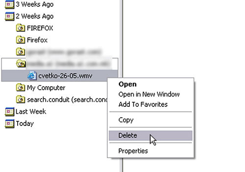 حذف انتقائي لعناصر من إنترنت إكسبلورر