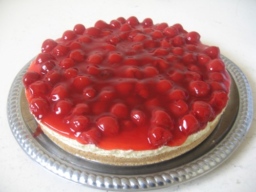 9. تركي الكيك حتى تبرد ثم قومي بتزيينها بالكريمة والفواكه وقومي بتقطيعها