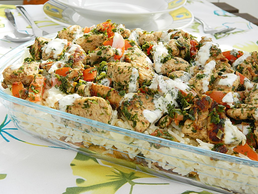قومي بخلط اللبن مع الطحينة مع الليمون واسكبي من هذا الخليط قومي بوضعه من فوق الأرز