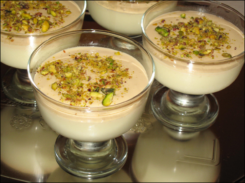 - بعد توزيعه في الاطباق اتركيه حتى يهدأ قليلاً ثم يدخل الثلاجة