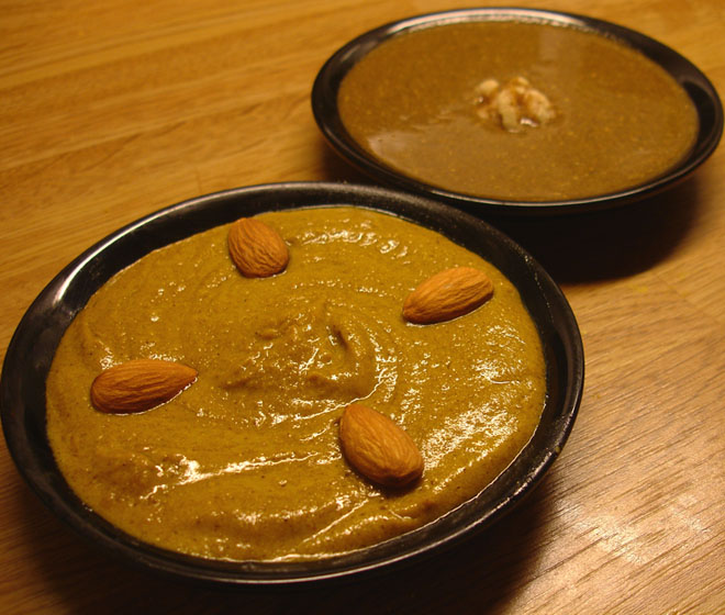 - يحمى الفرن على حرارة متوسطة، ندهن صينية بالزيت ونصب الخليط فيها.