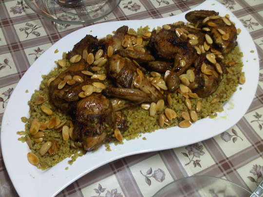 8. للتزيين –  نقلي البصل المفروم المتبقي ونوزعه فوق طبق الجريش.