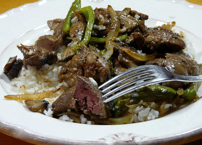 1. كيلو واحد من الكبدة مقطعة شرائح صغيرة