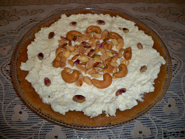 من المميز تزيين المفروكة من اعلى بالمكسرات وما اروعها عندما تقدم مع القشطة