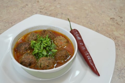 • نضيف القليل من الملح والفلفل الى الاناء ونقوم بتحمير كرات اللحم في القليل من الزيت وبعدها نقوم بوضعها في صوص الطماطم وتقدم ساخنة